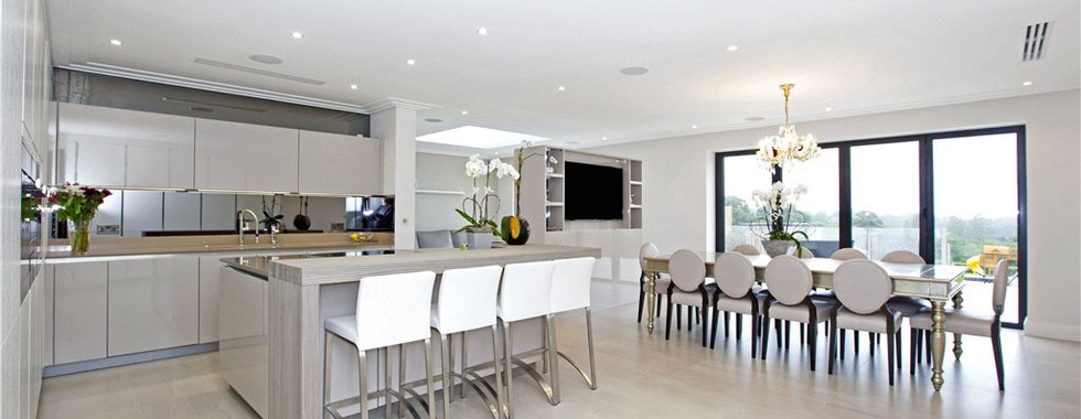 When it comes to aspirational country living in Hertfordshire this truly is a home of dreams, it has everything you could possibly want for a comfortable lifestyle and more! Adding luxury features such as a heated outdoor pool, poolhouse, stunning meditterenean landscaping of the extensive private gardens, a balcony overlooking the pool make this home feel like you're on holiday without even leaving the house! LCCL construction designed and built the total house redevelopment to an exceptionally high standard. From initial consultation, design and planning, structural calculations to final completion. Achieving this involved stripping down the old house to its bones, groundworks and construction of the new extension and raised patio, refurbishing every square inch to a very high standard using the finest materials. This house included kitchen design, supply and installation from Hacker German luxury made kitchens, to provide the family with the centrepiece of the open plan cooking/dining/entertaining space that they longed for. The client required new areas to compliment their lifestyle and make the house work for their everyday needs as part of the renovation, for example a generous sized home office with reliable and efficient networking capabilities, additional bedrooms, en-suite bathroom and dressing room facilities, a children's play room. Expert skill and precision was required for the installation of new luxury bathroom suites designed and supplied from Fired Earth, to create seamless wet rooms. A bespoke masterpiece of a staircase custom made designed-supplied and installed. Careful attention to detail was payed to the finishing touches such as electrical work with mood enhancing ambient lighting and soft LED lighting indoors and outdoors, to suit all occasions. The clients now have a spacious beautifully finished home to be proud of.